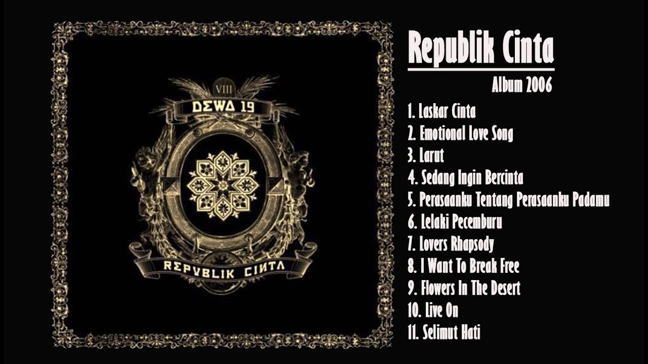 Download Dewa 19 Live lagu mp3 - dapat kamu download secara gratis di Mrlagu Dengarkan dan Unduh musik Dewa 19 Live tanpa bayar dan tanpa iklan yang menganggu. DEWA 19 Full Album Republik Cinta 2006 Audio Preview remove-circle Share or Embed This Item. Cintailah Cinta adalah album keenam karya grup band Indonesia Dewa.